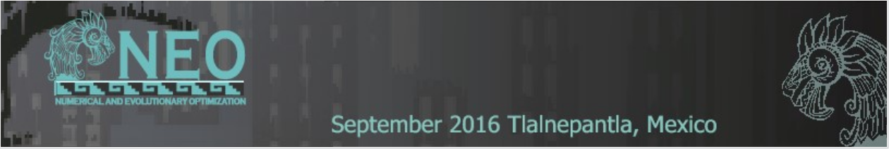 | NEO 2016: September 20+ 21, 2016 4th international workshop on numerical and evolutionary optimization. Participation at the NEO 2016 will allow for (passive) attendance of the NEO Cities 2016. |