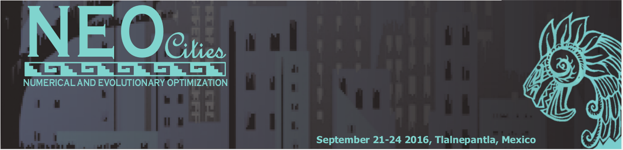 NEO 2016: September 20 + 21, 2016 4th international workshop on numerical and evolutionary optimization. Participation at the NEO 2016 will allow for (passive) attendance of the NEO Cities 2016.